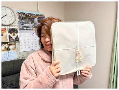 今回はチェック柄。しっとり肌触りが気持ちいい。