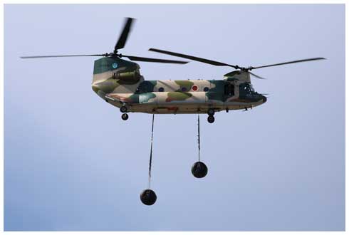 以前に乗りました。CH-47の重量物運搬の実演です。