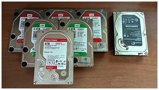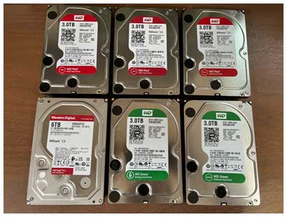 運用離脱したHDDがかなり溜まってきました。内訳は2014年に購入した「WD30EZRX」2台、2016年購入の「WD30EFRX」3台、そして先日使用停止した2021年購入「WD60EFZX」1台のの合計6台になります。6TBを除けばすべて購入から10年近く経つわけで、不具合が発生するのも致し方なしですね。