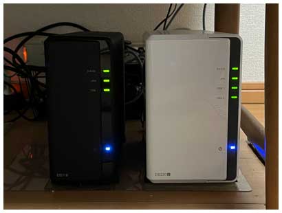 先週から行っていたメインサーバーのバックアップ再構築がようやく終わりました。1ベイNASの「DS118」に8TB HDD、2ベイNASの「DS220j」には3TBと6TBのHDDを内蔵し、それぞれSynology Driveで内容をミラーリング。