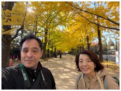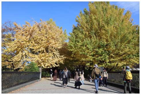 戻っていく途中でもう一度イチョウ並木に寄って散策を楽しみました。この時間になると人出もかなり多くなってきていたので、開場に合わせて早めに来たのは正解だったようです。