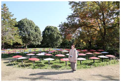 日本庭園では夜間ライトアップが行われているとのこと。和傘や風鈴などの仕掛けもあり、以前とは違った雰囲気を味わえました。