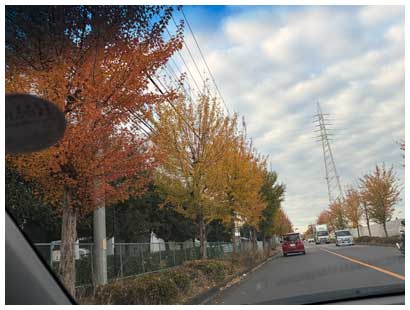 昼食後は再び航空公園駅まで歩きました。前日通らなかった場所に大きないちょうの樹を発見。まだここも少しだけ緑色が残っていますが、青い空に黄色が良く映えていました。