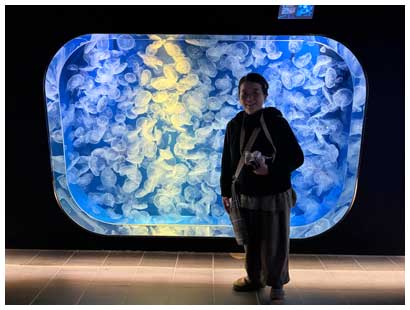 次に入ったのは「クラゲライフ」。クラゲをテーマにした展示ですが、妻はこれが大好き。ただ浮遊しているのを見ると確かに癒されます...。