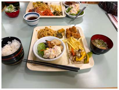 席もまだ空いていて大丈夫でした。私は「揚げギョーザオニオンぽん酢」定食、妻は「なす定食」を注文。それぞれ二切れほどおかずを取り換えっこして頂きました。ここはご飯もふっくら炊けていて美味しい。話を聞いているとちょうど我々が食べ終わる頃にご飯もなくなったようで、あれ以上到着が遅くなっていると食べられないところでした。