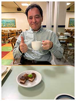部屋に戻って二度寝した後に食堂へ。妻もすっかり回復したようで、ご飯もおかわり。温かい栗ごはんは食べられなかったけれど、元気になって良かったね。