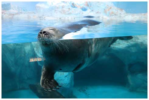 「トドの海」でも清掃作業中でしたが、主役は放水ホースの下に陣取って「打たせ湯」状態。なんとも気持ちがよさそうです。