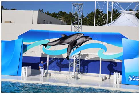 イルカパフォーマンスが行われるサーフスタジアムです。