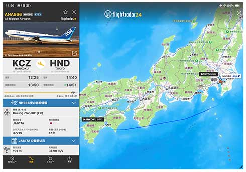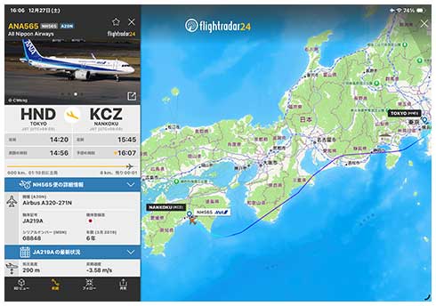紀伊半島までは海岸沿いを飛行し、その後は洋上飛行になりました。
