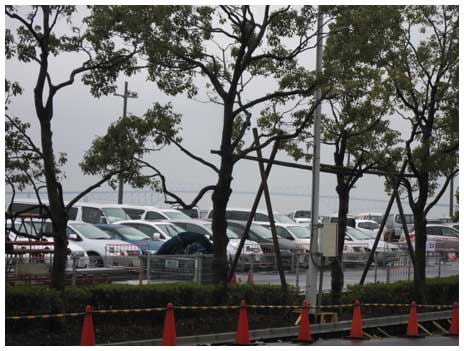 台風17号が日曜夜から月曜朝にかけて接近する見込みです。このため午前中に駐車場に出向き、バイクと車をワイヤーで括りつけ、バイクカバーを紐で車体に括りつけておきました。南および東からの強い風が予測され、この駐車の仕方だと有利ではありますが、念を入れておくに越したことはありません。
