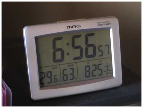 使っていた目覚まし時計がそろそろくたびれてきたので、新しいのを買ってきました。今回は部屋の状態がわかるように、温度・湿度の表示機能を持つものを選んできた次第。