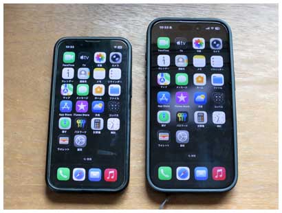 いよいよご対面。前機のiPhone 13と比べるとレンズがかなり大きいです。