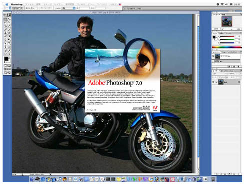 Adobeから待望の「Adobe Photoshop 7.0J」が発売されました。コンピュータを知らない人でも「Photoshop」の名前を聞いたことがあるでしょう。デザイン・出版・Webデザイン分野で圧倒的に支持されているソフトウェアです。私が初めてPhotoshopを触ったのは学生の時。当時のバージョンは2.0だった様に思います。それから正常進化を重ねてついにMac OS X上に来ました。これで必要なものはすべて揃いました。あとは、内容だけ?