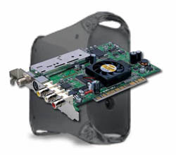 実はMac版でもUSB接続のものは以前からありましたが、ビットレートが最大6Mbpsとちょっと不足気味だった(もちろんUSB1.1の最大転送レートがネックになっている)ので、導入を見送っていました。今回ビットレートが最大12MbpsのPCIカード版がリリースされ、ドライバとアプリケーションがMac OS Xに正式対応したのを契機に導入しました。こういう拡張方法はもはやPower Mac G4シリーズだけに許された特権(?)です。