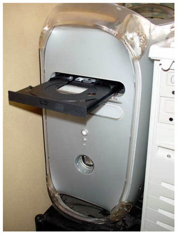 さて、組み込んだら後はちゃんと動作するかですね。Apple DVD Player・iTunes・iDVD・Toast 6 Titanuim・Disc Saucer 2など主な光学ドライブを使うアプリケーションからもドライブは認識できています。さすがに純正ドライブの後継品というだけのことはありますね。実はDVR-106DはMac OS X 10.2.7からサポートされており、一部のPower Mac G5にも搭載されているのです。