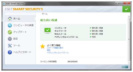 「ESET SMART SECURITY 5」は軽さと機能のバランスが良いと評判で、Nortonのようにでしゃばらないのが好ましいです。あと1年もしくは1年当たりのライセンス料金が競合製品と比べて比較的安価なことから、複数マシンに導入しやすいのが嬉しい。今回は自作マシン用に加え、実家マシン2台分も合わせてライセンスを取得しました。次にメンテする際には入れ替える予定です。