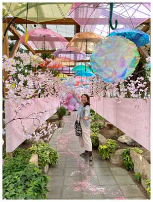日本庭園では夜間ライトアップが行われているとのこと。和傘や風鈴などの仕掛けもあり、以前とは違った雰囲気を味わえました。