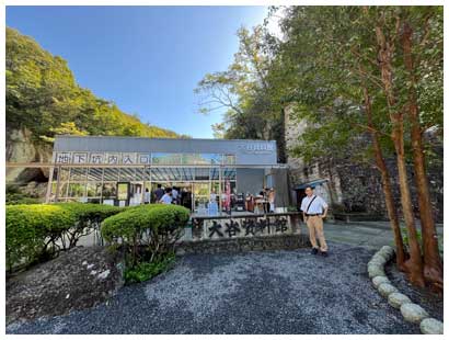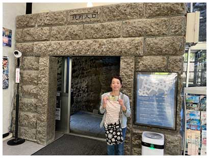 駐車場から岩場切り通しを抜けて資料館へ向かいます。