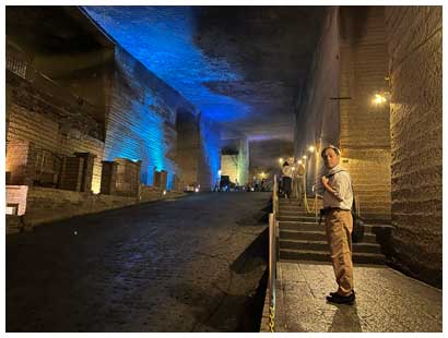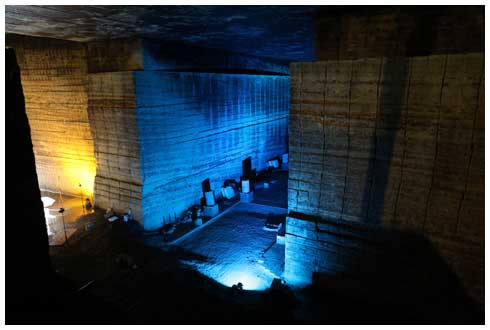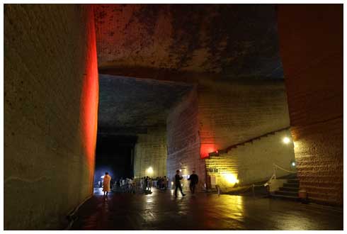 所々で照明が壁面を照らしており、坑内というよりは全体がアート作品のようです。