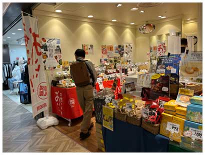 食事を終えて地下街を歩いていると、イベント広場になっているスペースで高知と島根の地産品を売っていました。どうやらNHKの朝ドラつながりのようです。妻は美味しそうなものを見つけて早速購入(笑)。こういうのには目がありません。