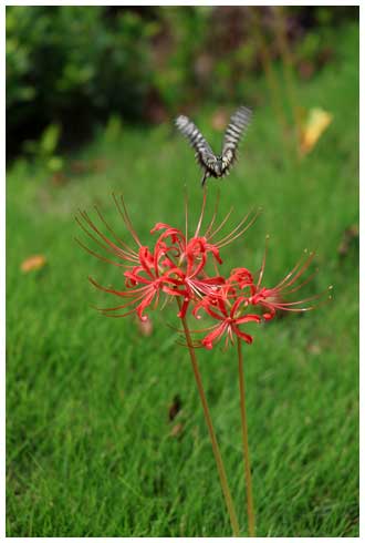 曼珠沙華に蝶が寄って来たところを撮れました。