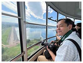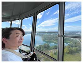 14:00から再び富士見展望塔へ。この展望塔はゴンドラが回りながら上下動するので、動かずとも360°の視界が楽しめます。足元の狭山湖やベルーナドームをはじめ、所沢の高層マンション群やさいたま新都心、西東京スカイタワーなどが主なランドマークです。
