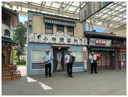 喫茶店を出ると商店街メンバーによるショーが始まり、沿道の見物人も巻き込んで大いに盛り上がりました。