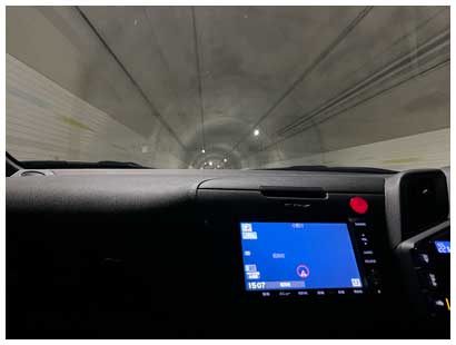 新しい長大トンネル。ナビ上では地中を進んでいます(笑)。