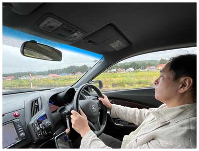 遠くには筑波山、妻が我らが愛車の走行中の姿を写してくれました。