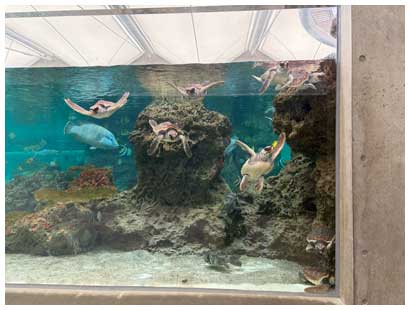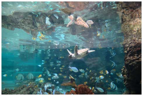 その手前にはウミガメが飼育されている「ウミガメの浜」がありました。後で聞いたところによれば、ここの浜でもウミガメの産卵が行われるそうです。