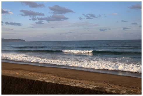 展示を見て外に出ると日が傾いてきていました。鴨川は太平洋に面しているので波が高く、打ち寄せる音が大きく聞こえます。なんだか懐かしい。