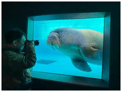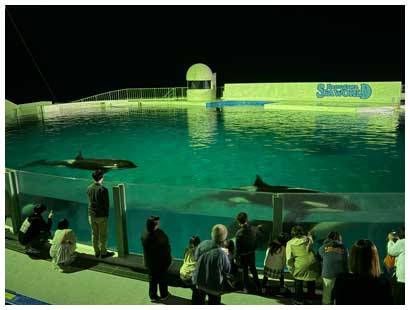 ベルーガの水槽にもやってきました。パフォーマンスが楽しみです。
