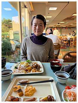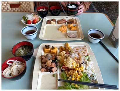 部屋に戻って二度寝した後に食堂へ。妻もすっかり回復したようで、ご飯もおかわり。温かい栗ごはんは食べられなかったけれど、元気になって良かったね。