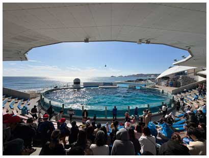 イルカパフォーマンスが行われるサーフスタジアムです。