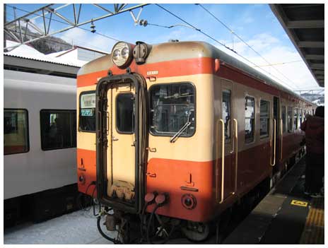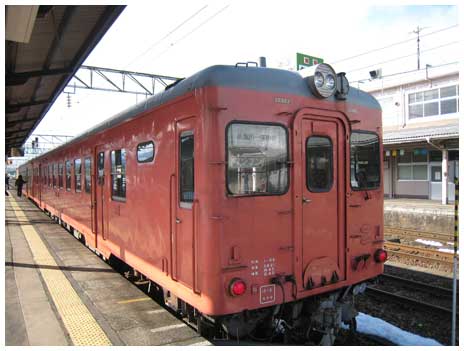 JR西日本の大糸線(糸魚川〜南小谷)で走っているキハ52形に乗ってきました。通常は1両で走行しているそうですが、最近は鉄道ファンが押し寄せ、この列車は二両編成での運転でした。