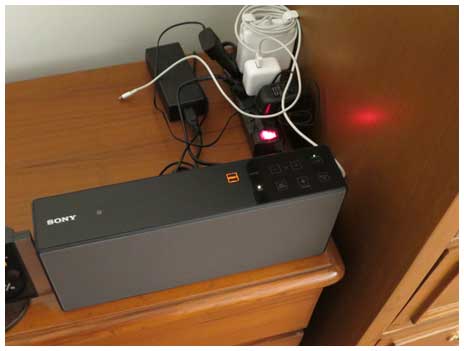 寝室のSRS-X77はバッテリー内蔵、Bluetooth接続なら途切れません。